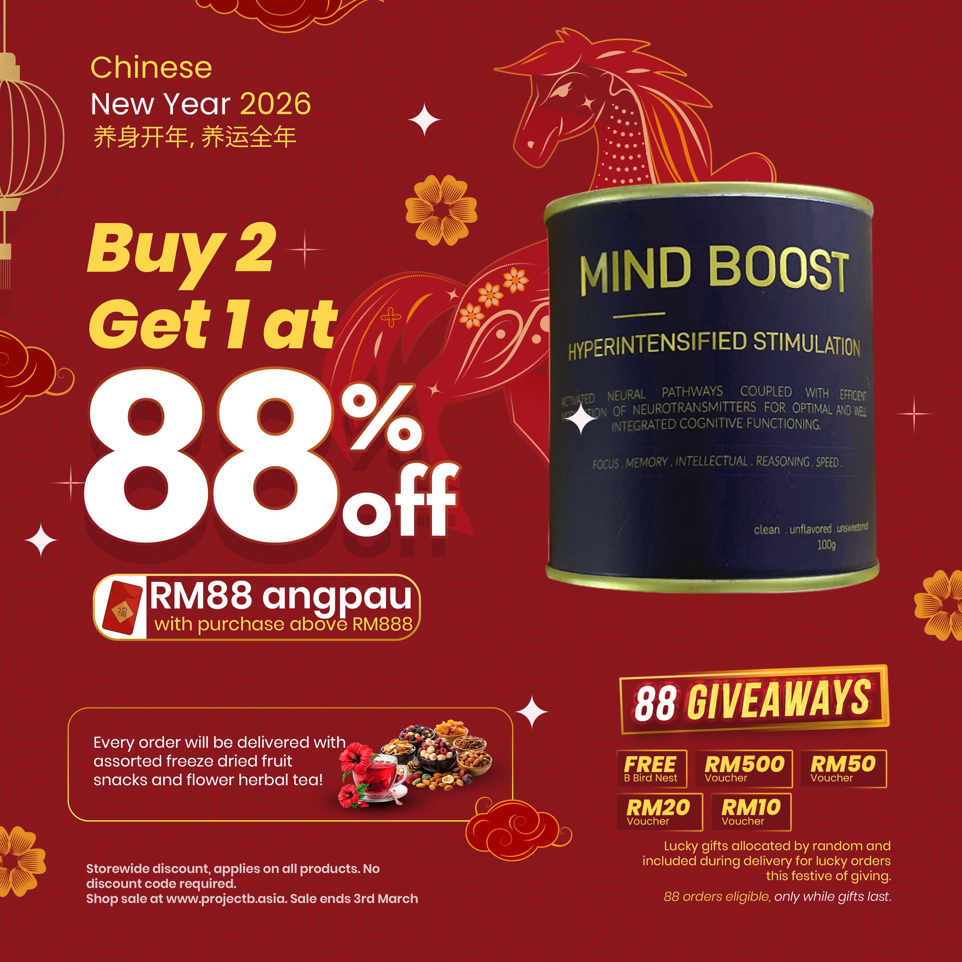 Servings Suggestion: Depending on your tolerance and habit, PROJECT B Mind Boost goes well with fruits juices, yogurt, tea and smoothie. Otherwise, conveniently pair it up with PROJECT B 100% natural fruit booster series and consume immediately.
