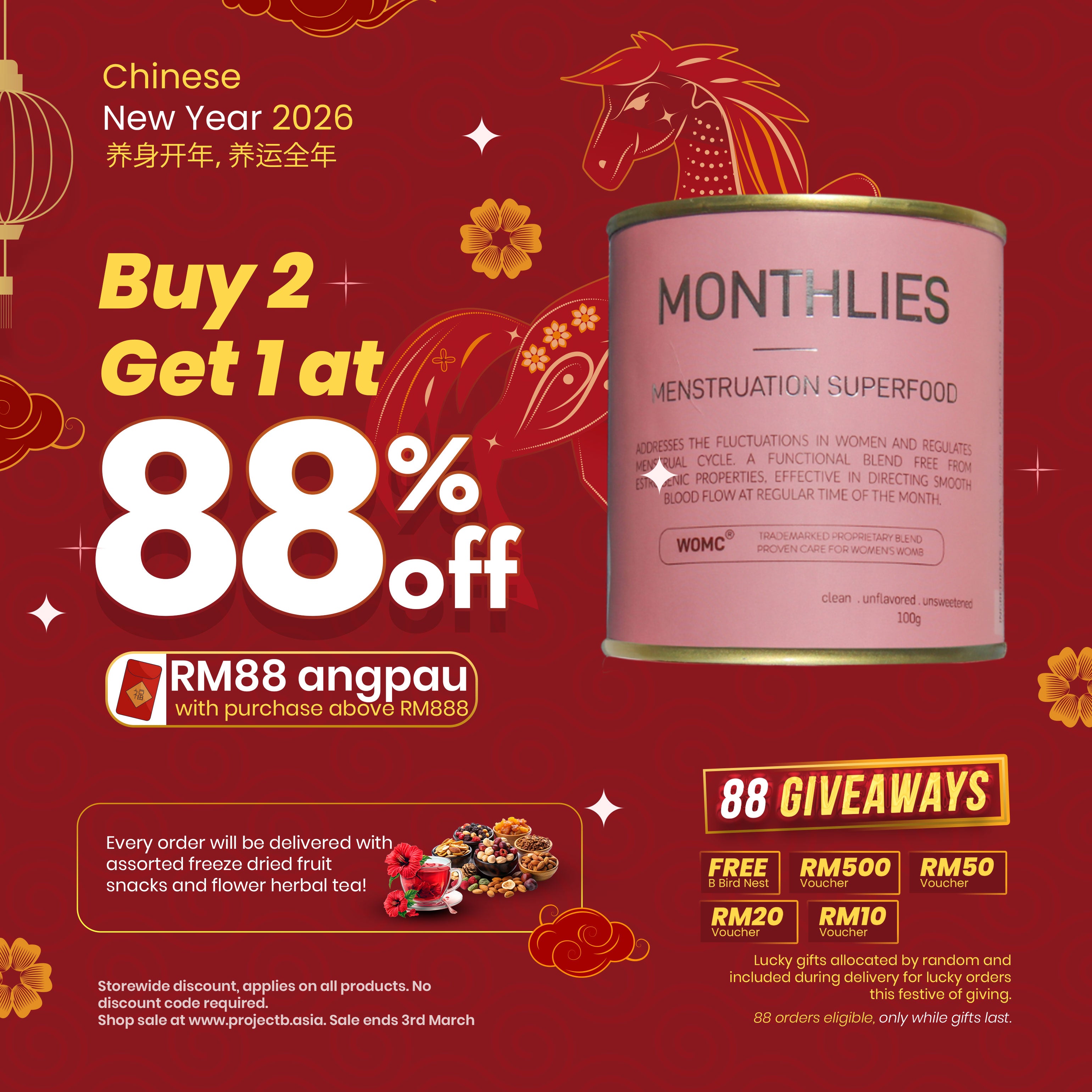 Servings Suggestion: Depending on your tolerance and habit, PROJECT B Monthlies goes well with honey, tea and soft food.